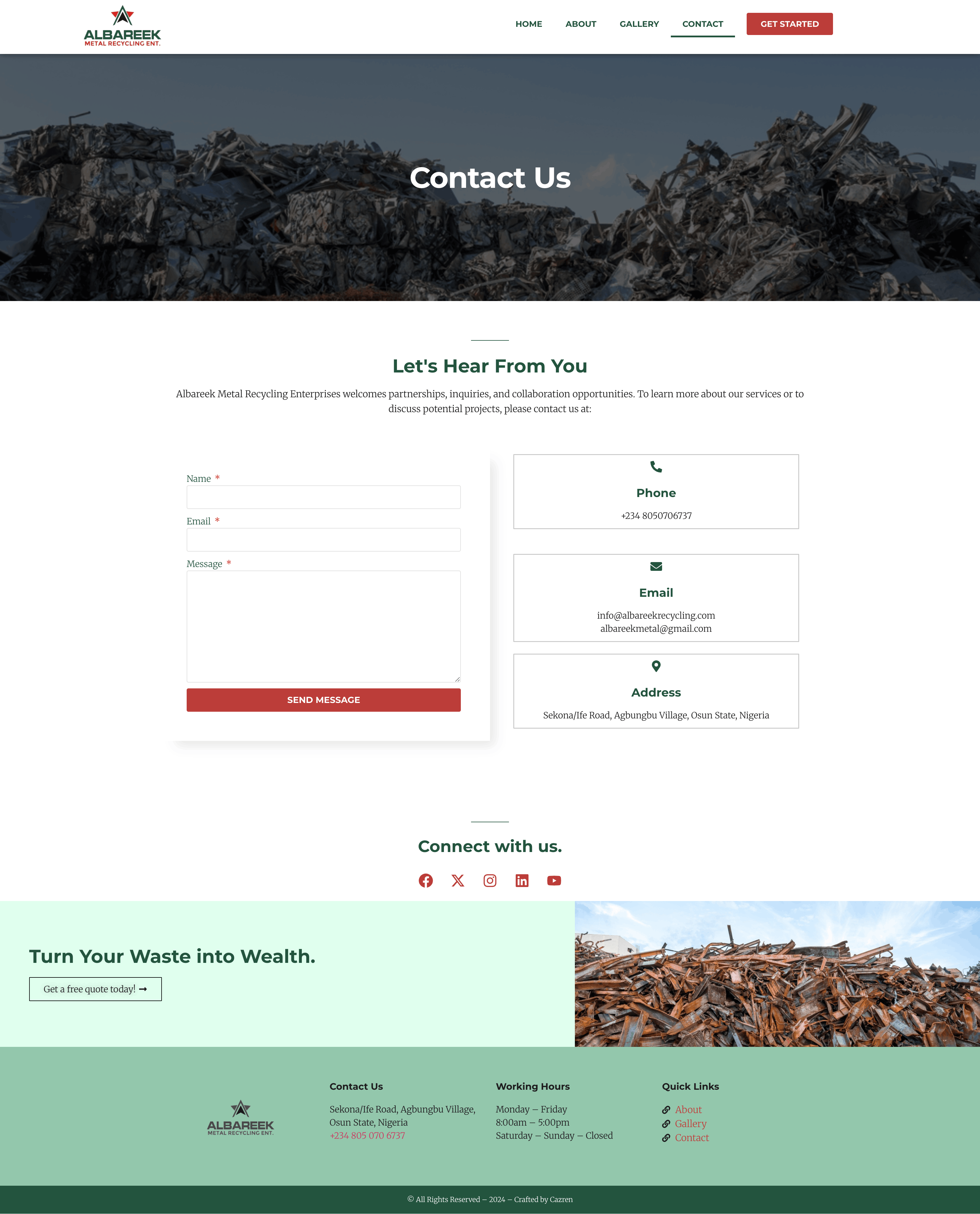 Albareek’s work was genuinely meaningful — diverting metal waste from landfills, creating local employment, and contributing to Nigeria’s circular economy. But without a website, none of that was visible to the clients, partners, or investors who might have cared most about it.