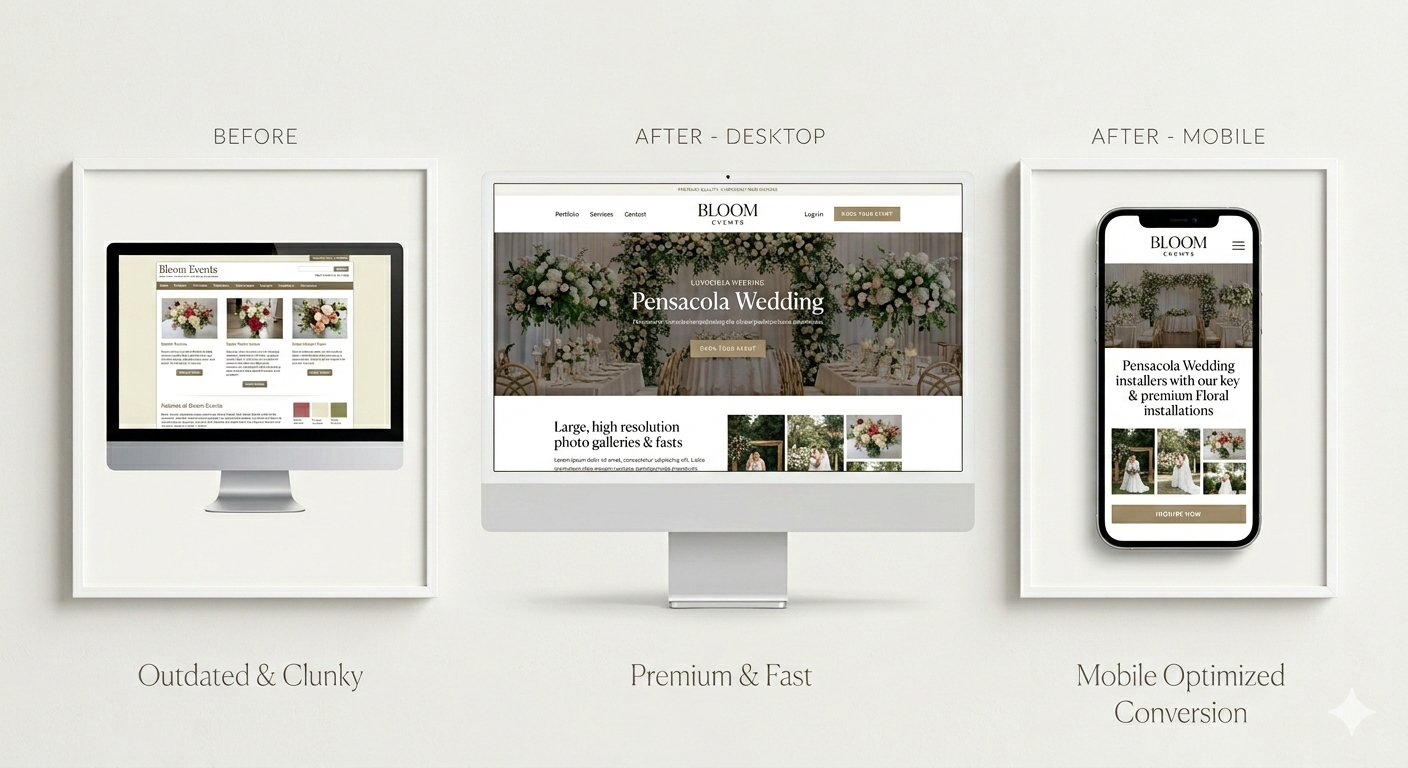 Bloom Events had built a strong reputation in Pensacola, FL for delivering beautifully styled, memorable occasions — from intimate gatherings to large-scale corporate events. Word spread quickly, and the business grew. But their website hadn’t grown with them.